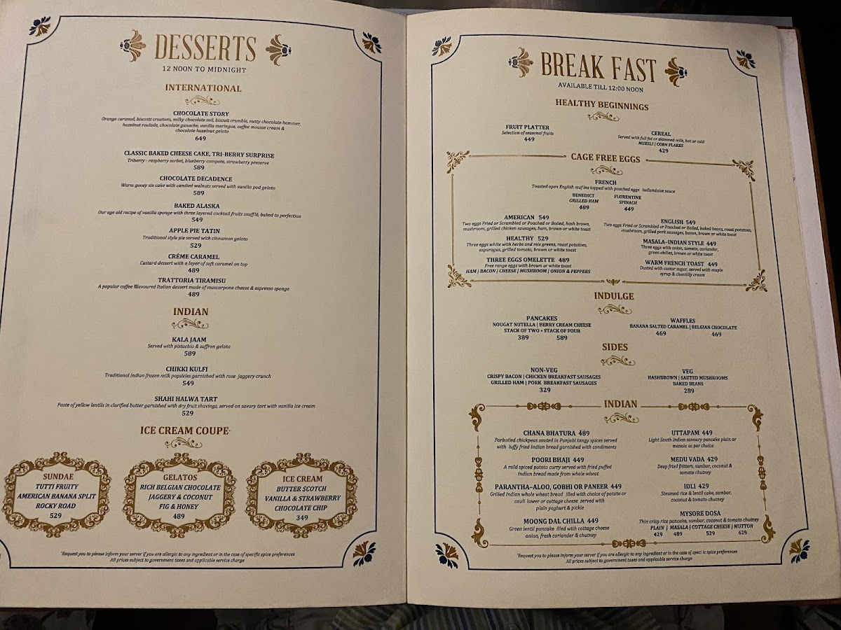 What makes the menu interesting is how it blends nostalgia with variety. One moment you’re eyeing a creamy Dal Makhani, and the next you’re tempted by fish and chips or a fluffy omelette with fresh coffee. Their dessert selection is just as inviting - think traditional Indian sweets paired with comforting puddings and cakes. It’s the kind of place where you can settle in for a relaxed lunch, plan a family dinner, or simply enjoy coffee and conversation in a setting that feels timeless yet lively.